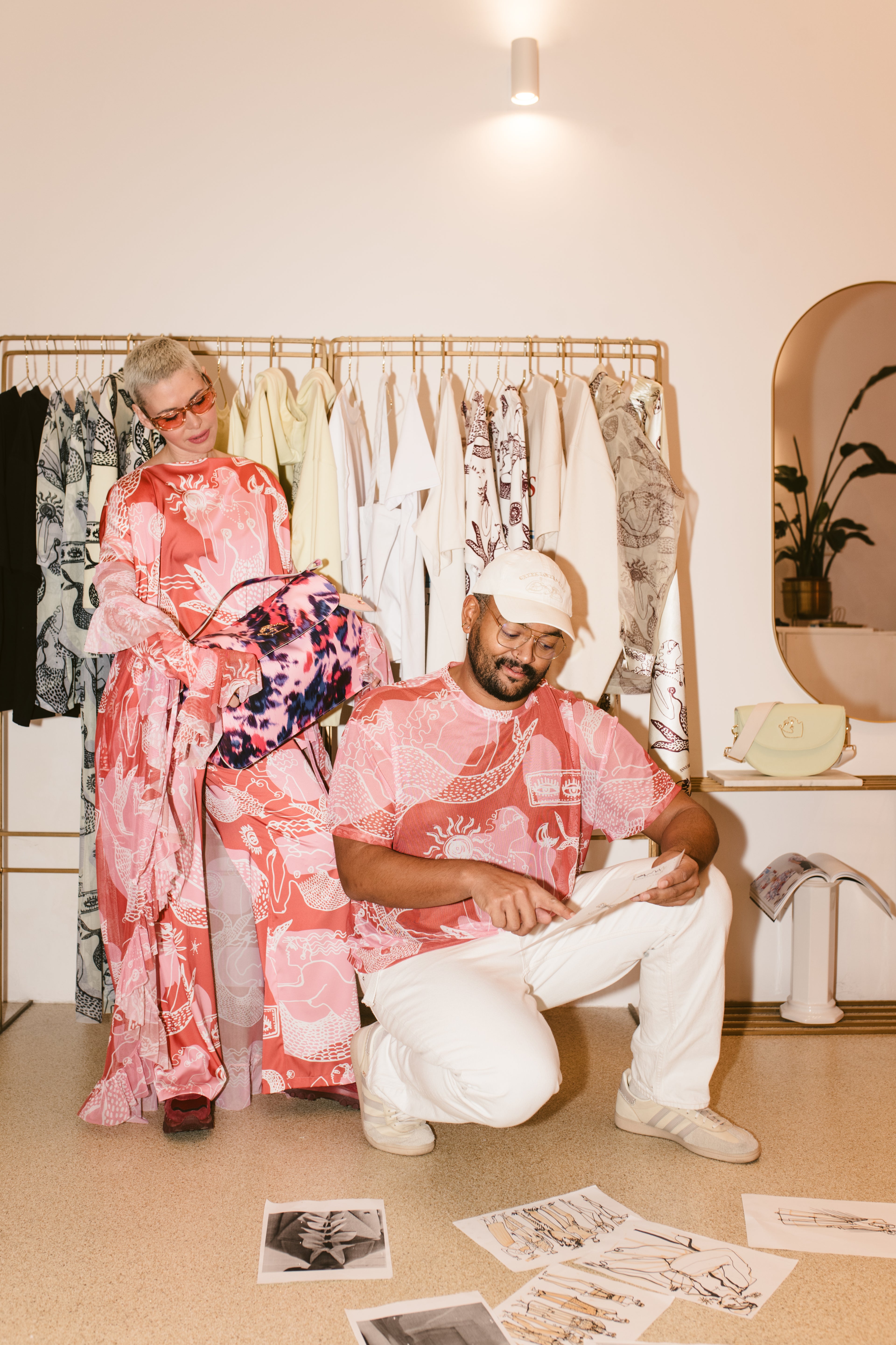 BUBBLE HEM SATIN PANTS - "MERMAIDS PRINT" | GOLDEN