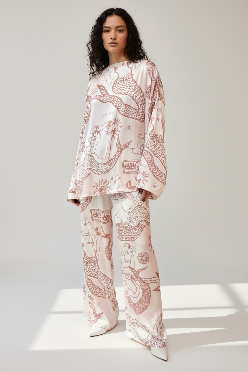 VELVET WIDE CROP PANTS - “MERMAID PRINT” | LEMON BUTTER & GREY