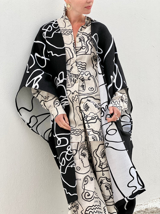 GIONA WOOL CAFTAN - BLACK & WHITE JACQUARD