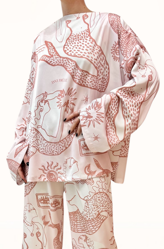 BOAT NECK SATIN TOP - "MERMAID PRINT" | SOFT PINK
