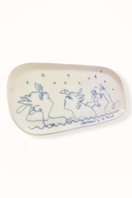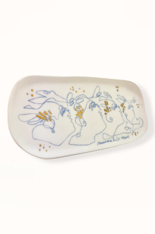 ELONGATED CERAMIC PLATE | BLUE & GOLD - No. 2