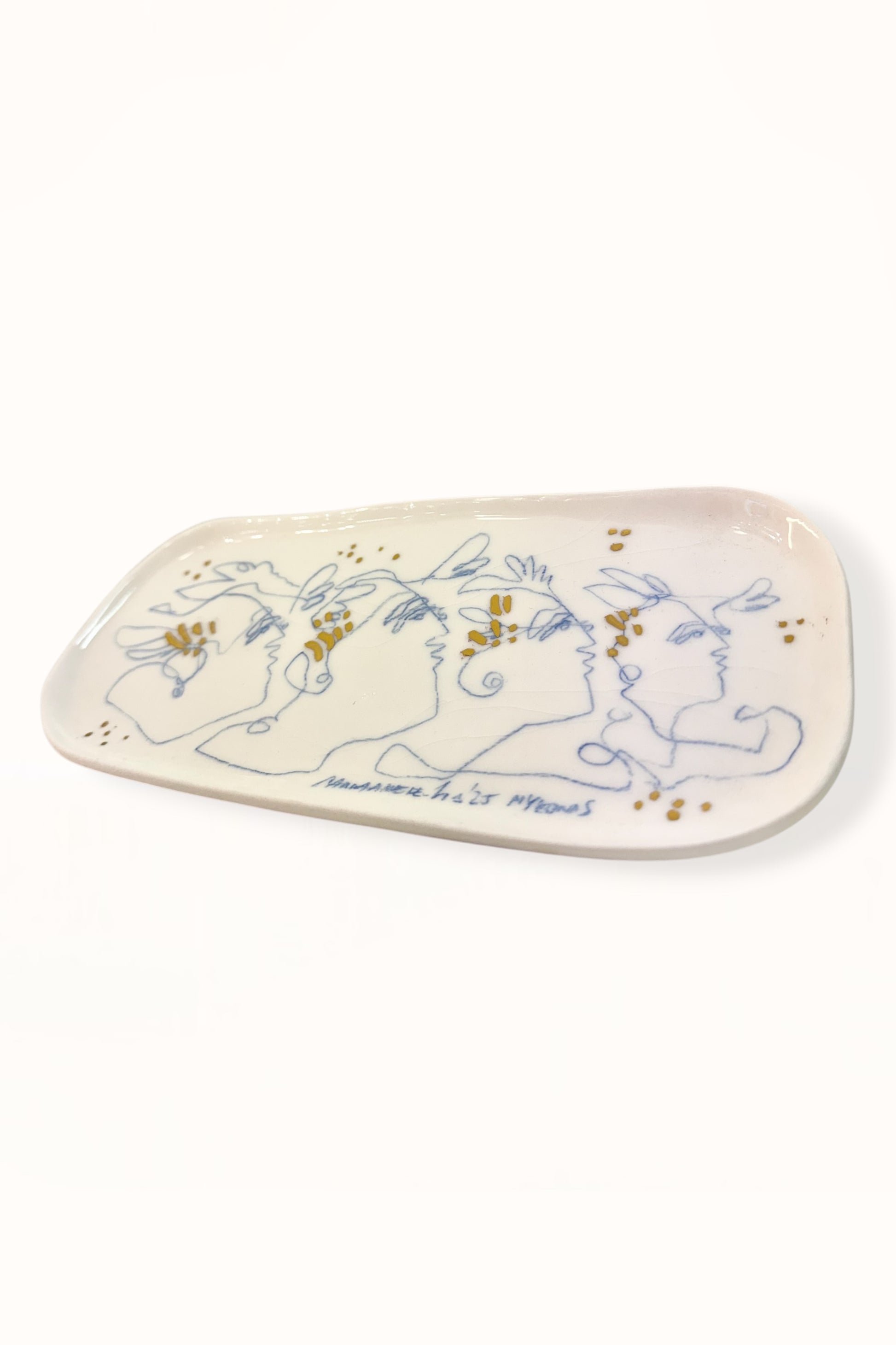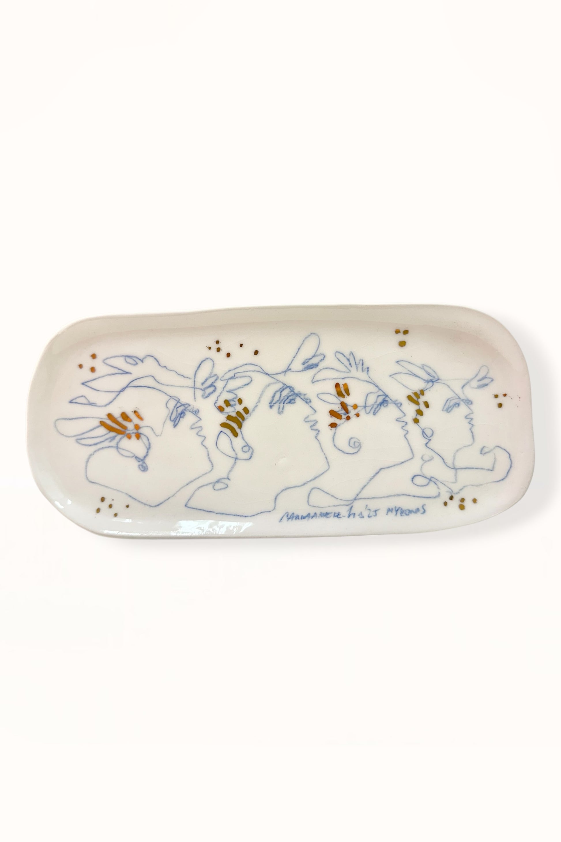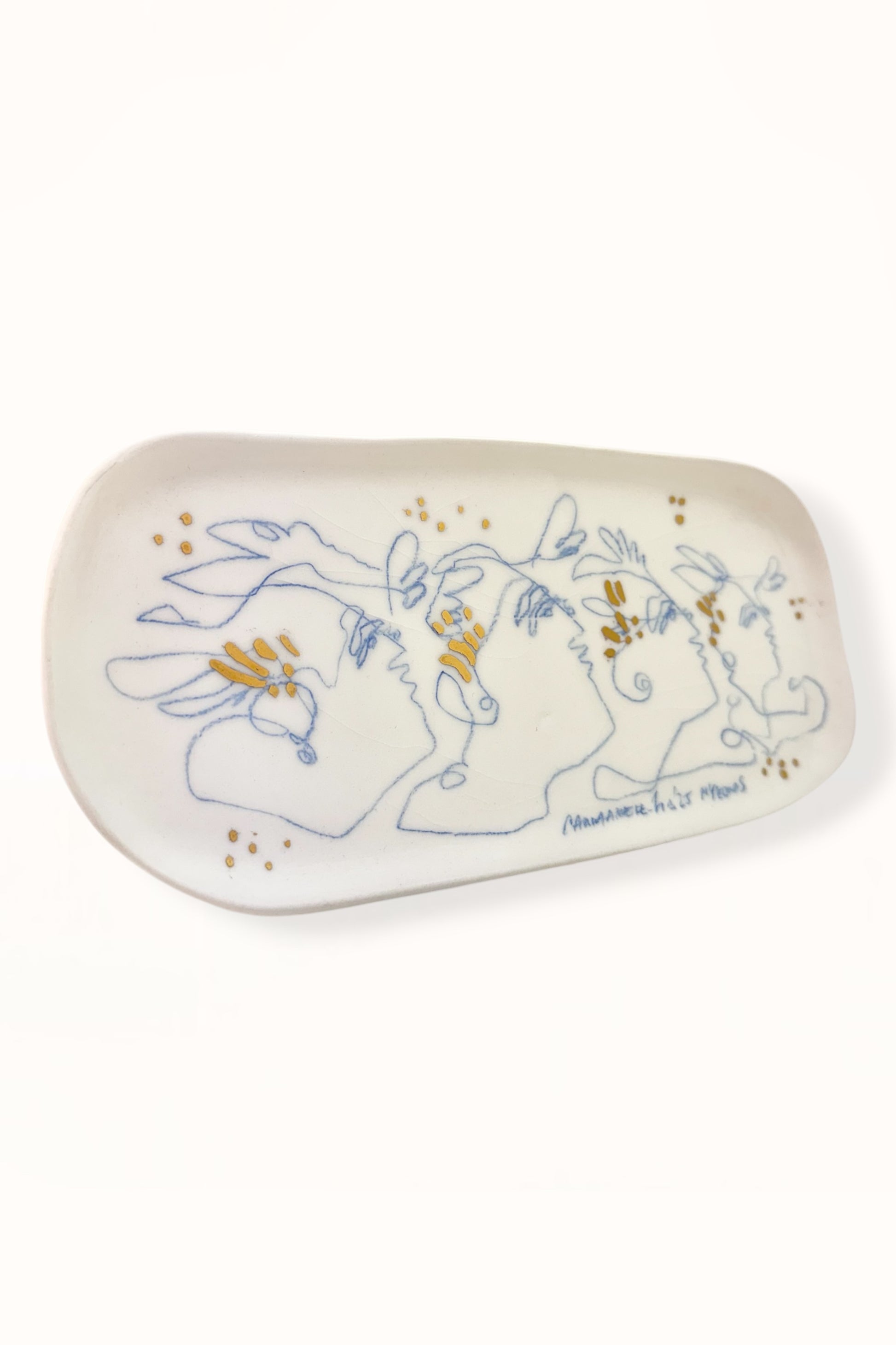 ELONGATED CERAMIC PLATE | BLUE & GOLD - No. 2