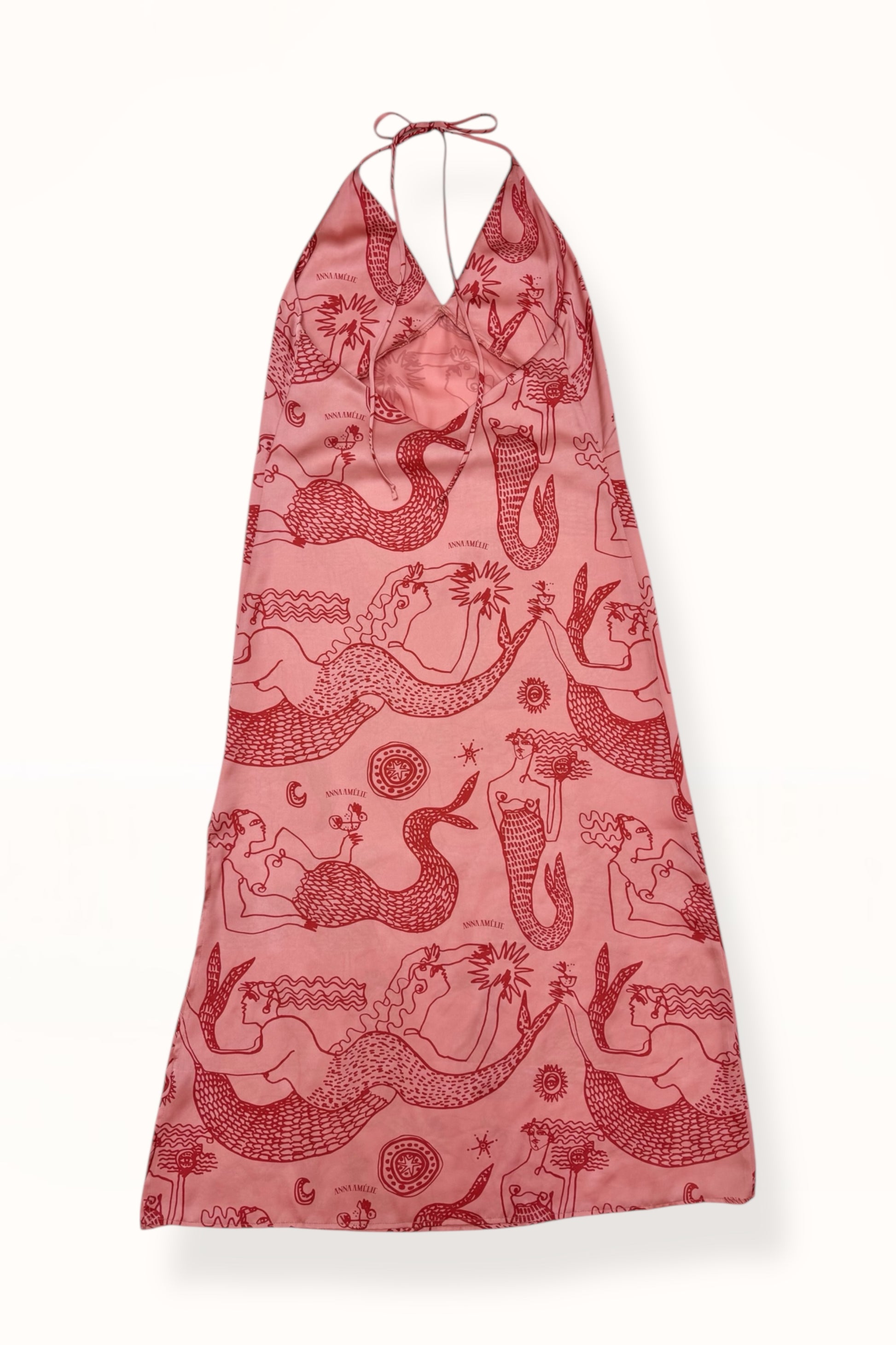HALTER NECK DRESS w. SCARF - MERMAID PRINT | PINK & RED